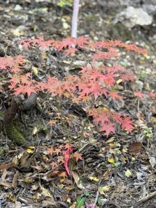 小さいながらも赤く色づくイロハモミジの苗木