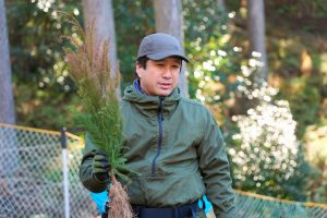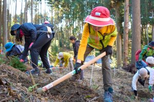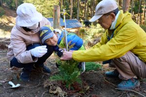 植樹作業では参加者の皆さんが協力しながら一本一本丁寧に苗木を植え、合計95本のスギの苗木を植樹することができました。