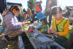 イシダの森で集めたヤシャブシなどを使ってリースづくりに挑戦。