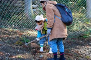 令和7年12月6日(土)、京都市左京区の如意ケ嶽の「イシダの森」で、第6回こども森づくり・体験学習会「イシダの森に木を植えよう!」を開催しました。
