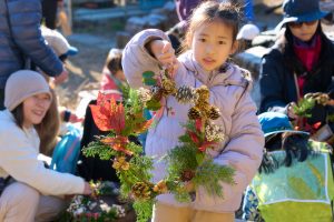 午後からは森で集めた自然素材を使ってクリスマスリースづくりにも挑戦し、親子で楽しい時間を過ごしました。