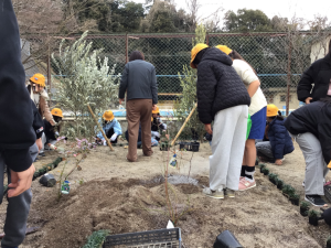 植樹に参加した児童からは「オリーブやブルーベリー、玉竜をみんなで植えたとき、ふだんあまり土にさわることがないので、とてもワクワクした」、「美化・環境委員として植樹に参加して、楽しかった」「卒業するが、下級生のみんなに大切に育てて欲しい」、「がんばって植えたので、水やりや草ぬきをして、きれいな学校をつくってくれたらいいな」といった感想が寄せられました。